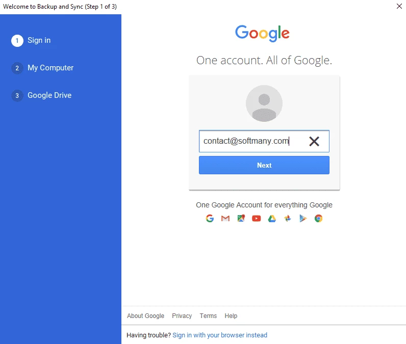 The app offers a straightforward installation process, as you can download it from SoftMany by clicking the ‘Download’ button given on the page. Run the installer, and install the app on your device. Launch the installed app, sign in using your Google account, and enable you to select folders for syncing within Drive, and configure it according to your preferences.
